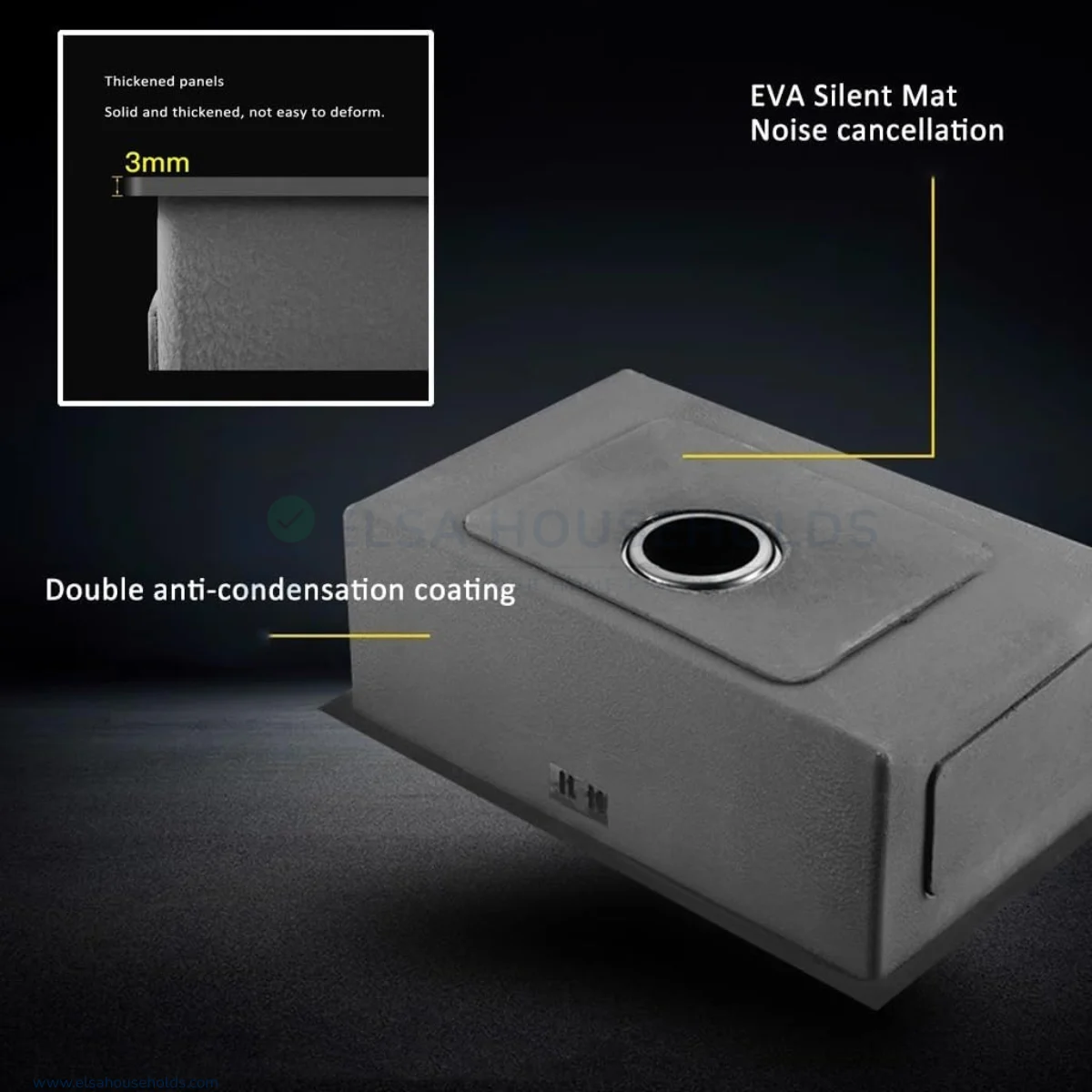 ✅ Design: Handmade single-bowl sink with modern styling