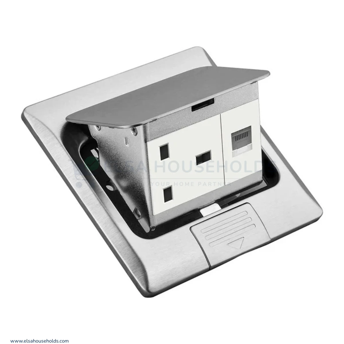 The Stainless Steel Access Floor Socket – 13A Socket + RJ45 provides a practical, stylish, and efficient solution for powering and connecting devices, ensuring productivity and a clutter-free workspace.